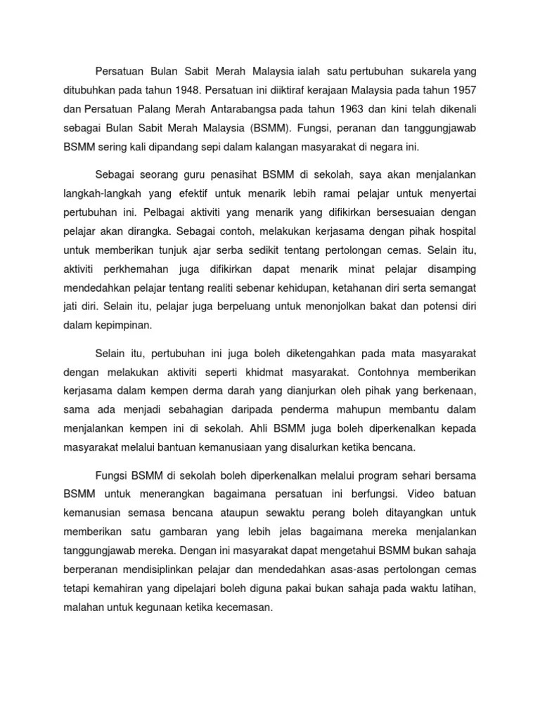 Check 'persatuan bulan sabit merah malaysia' translations into english. Bulan sabit merah malaysia (bsmm)) is a voluntary humanitarian organization that seeks to promote . Persekutuan antarabangsa persatuan palang merah dan sabit merah. Look through examples of persatuan bulan sabit merah malaysia translation in . Search over 14 million words and phrases in more than 510 language pairs.