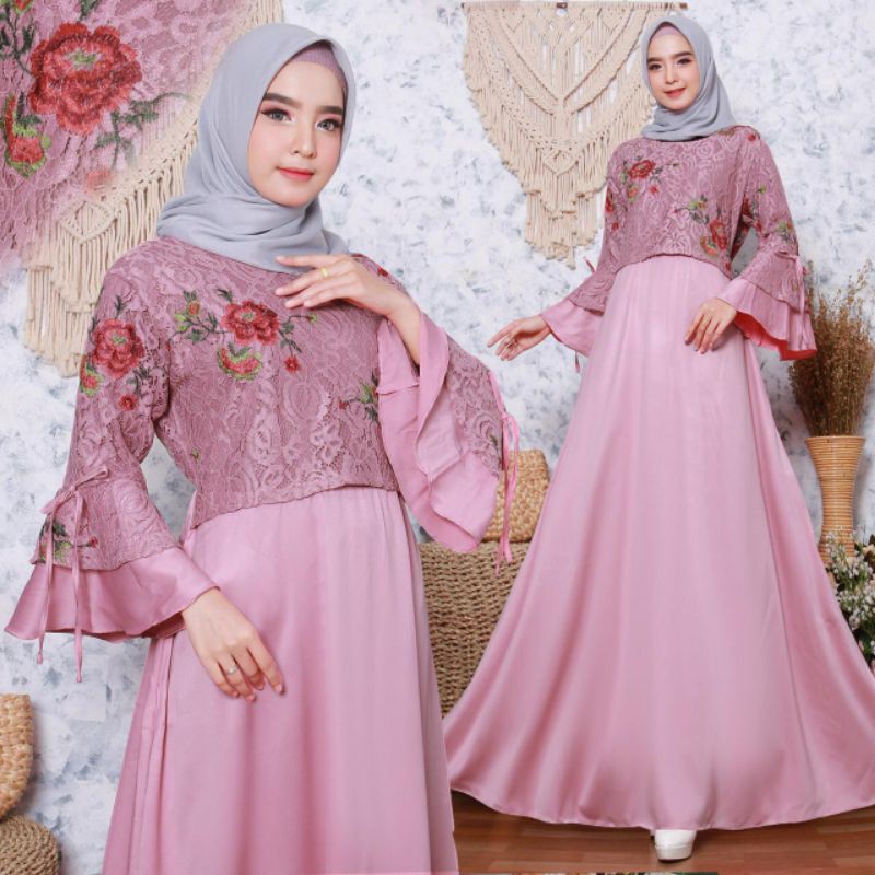 Gamis brukat mewah pesta bordir baju kebaya brokat kombinasi tile.